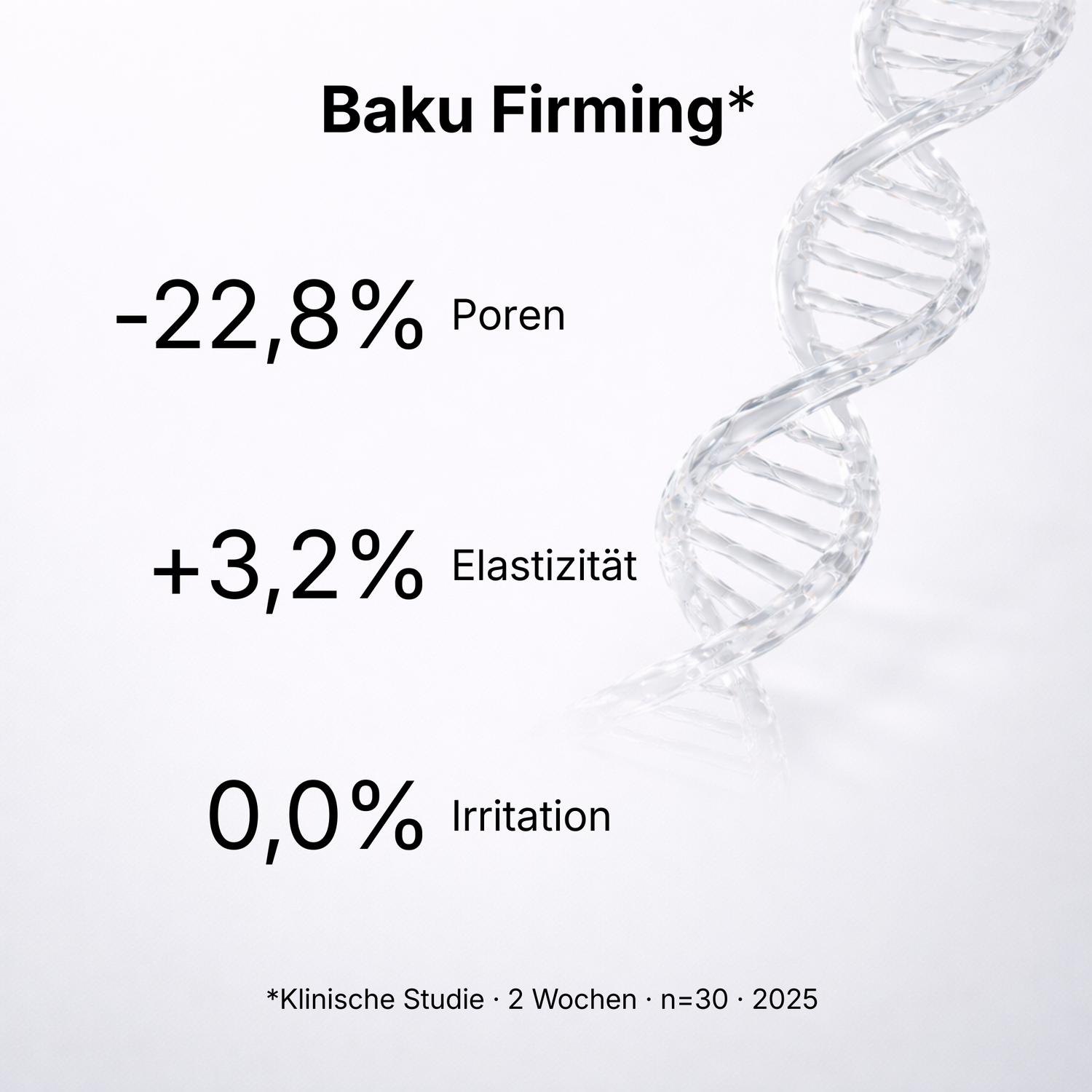 Klinische Testergebnisse zeigen eine Reduktion der sichtbaren Porenstruktur um −22,8 % sowie eine Verbesserung der Hautelastizität um +3,2 %. Zudem weist die Formulierung eine Irritationsrate von 0,0 % auf.