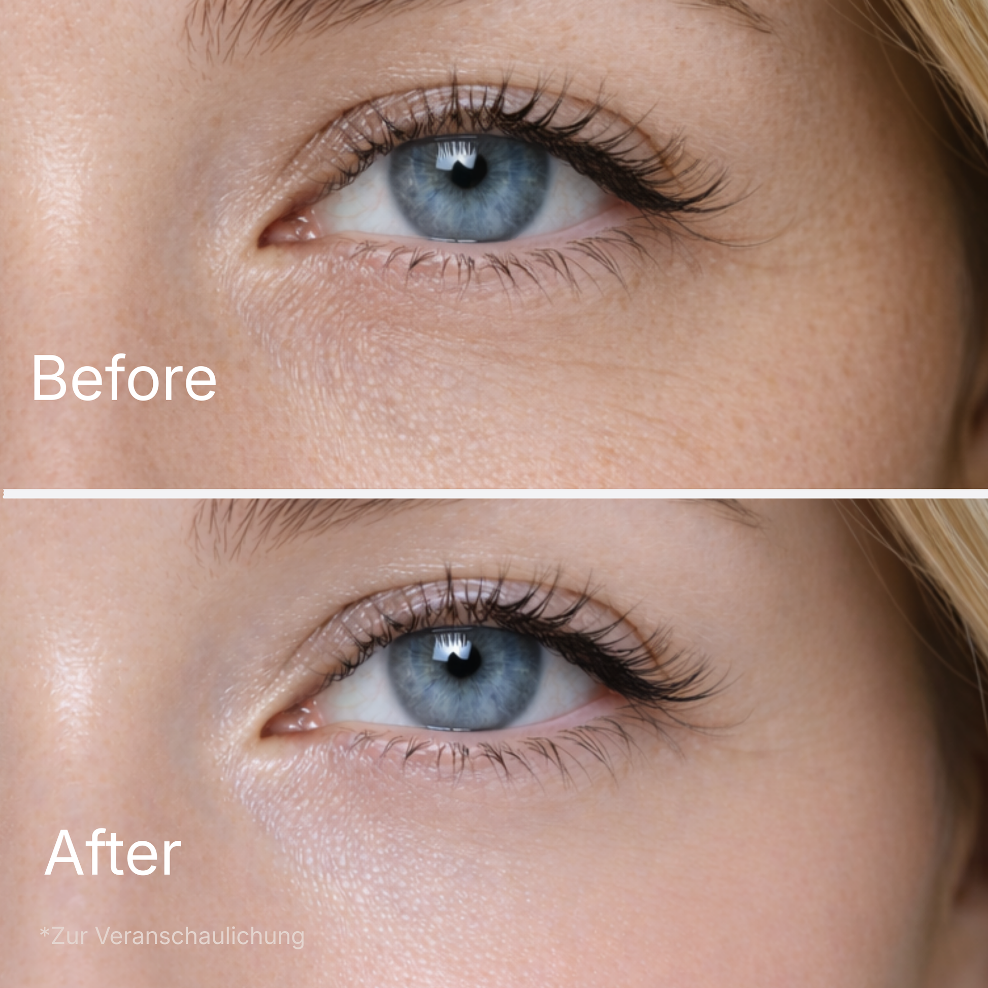 Eine kleine, etwa reiskorngroße Menge wird um die Augenpartie verteilt und eingeklopft, bis sie vollständig absorbiert ist.